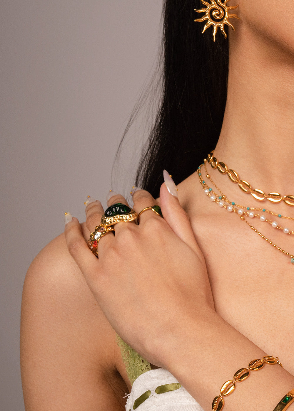 Materialien: 18 Karat massives Gold auf Messing, mit blauer Glasur überzogen