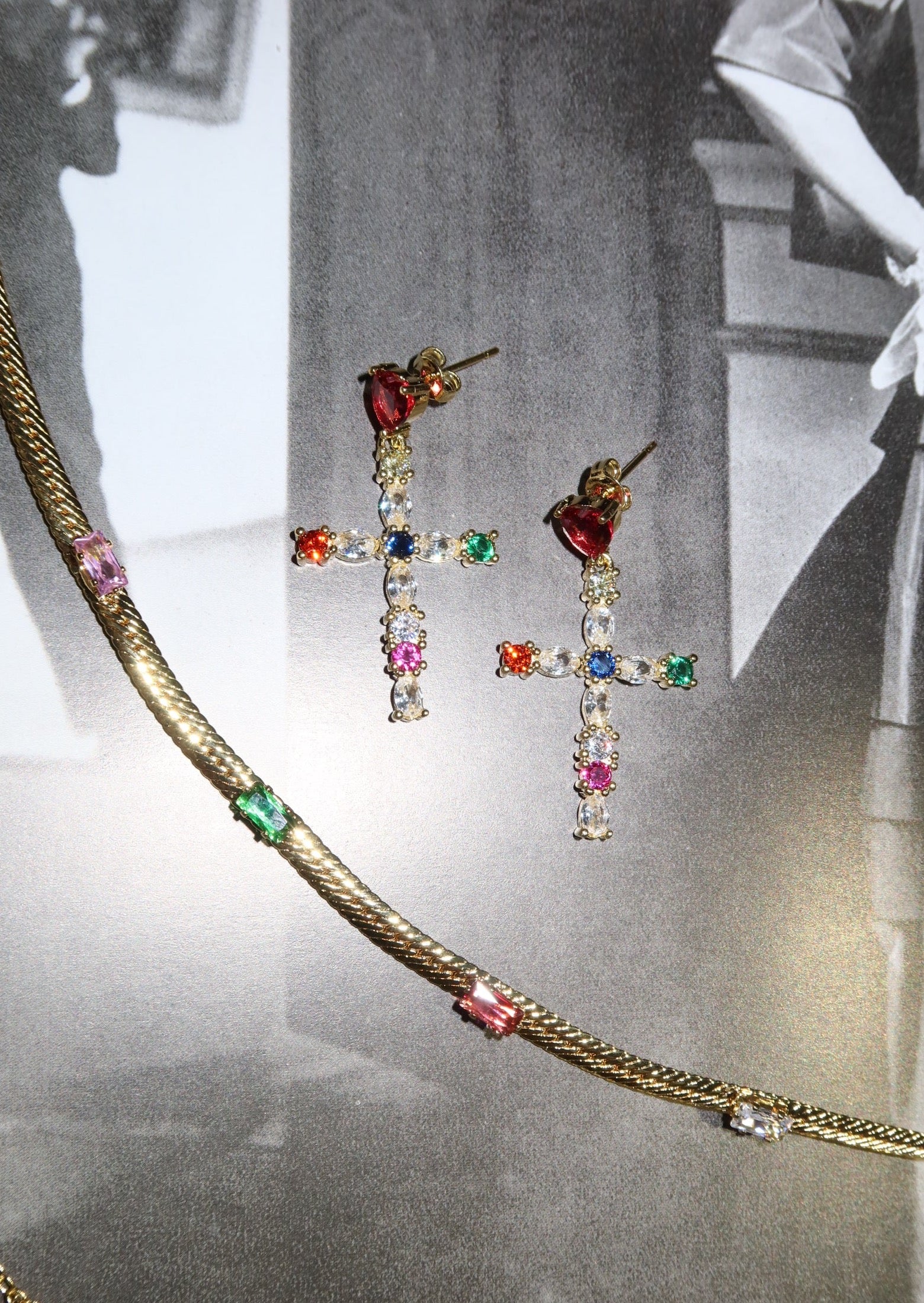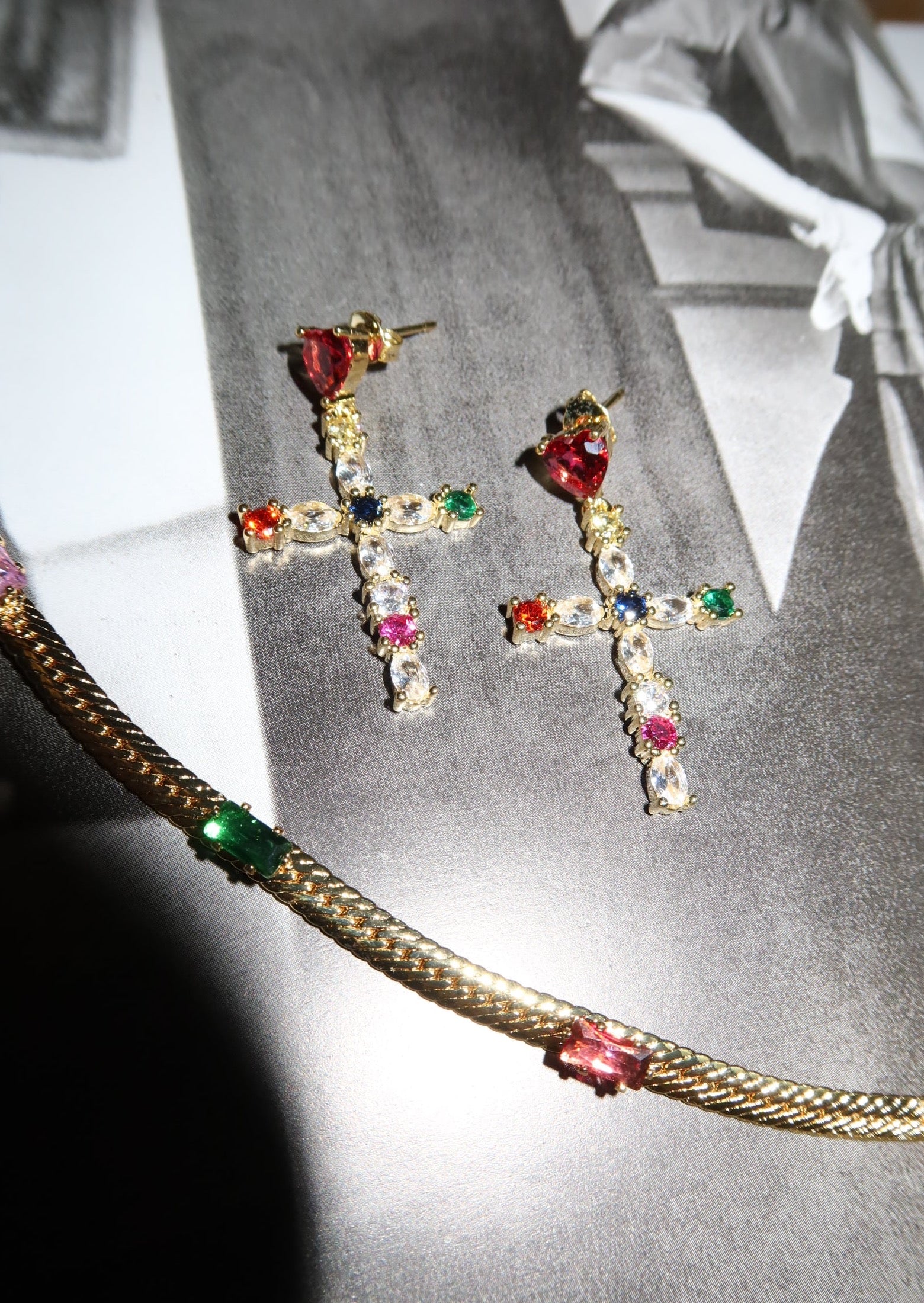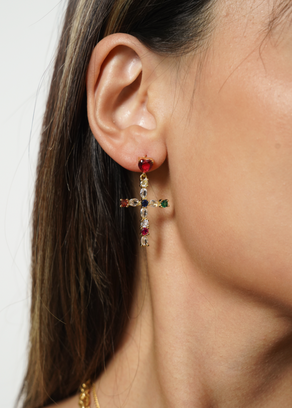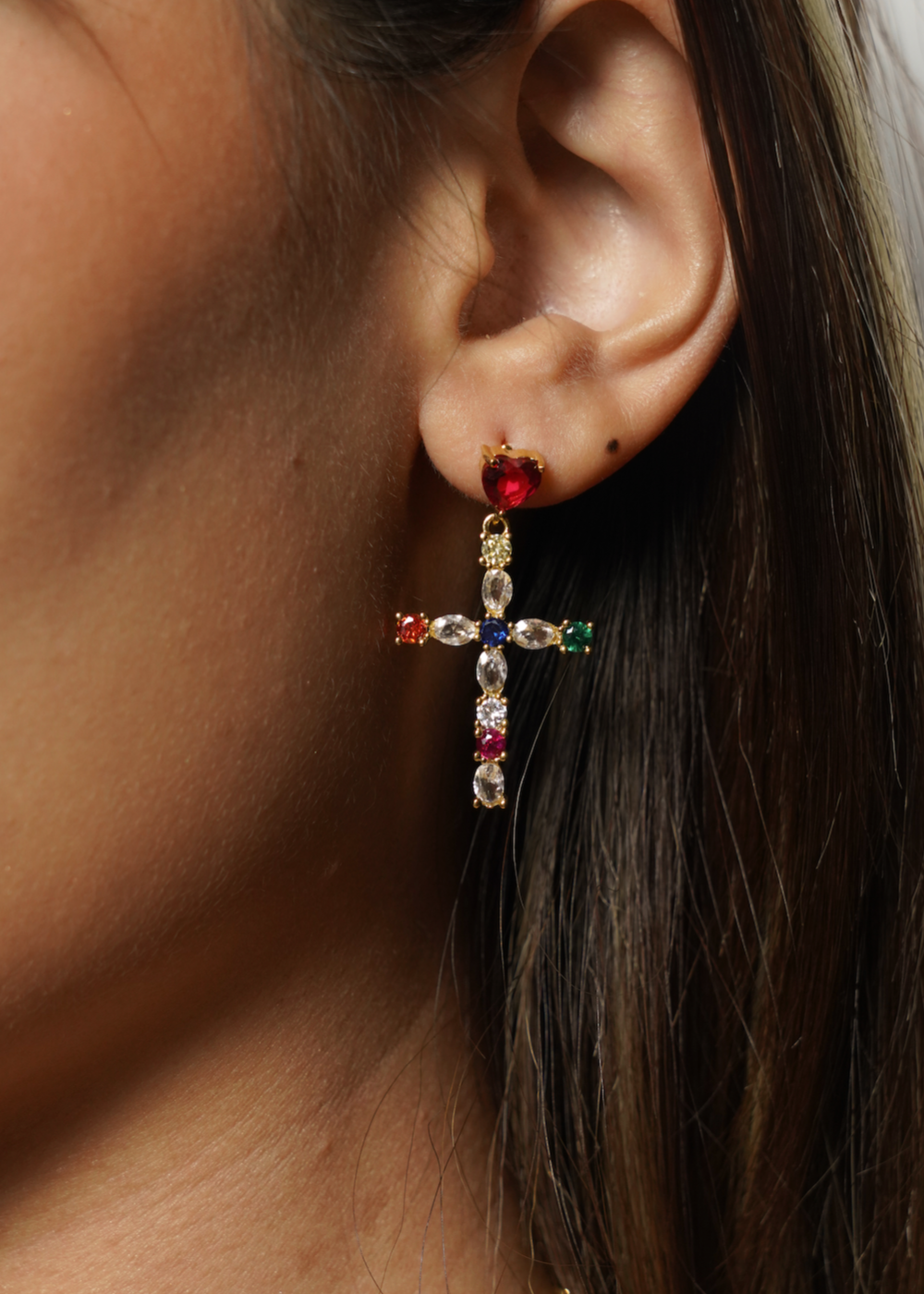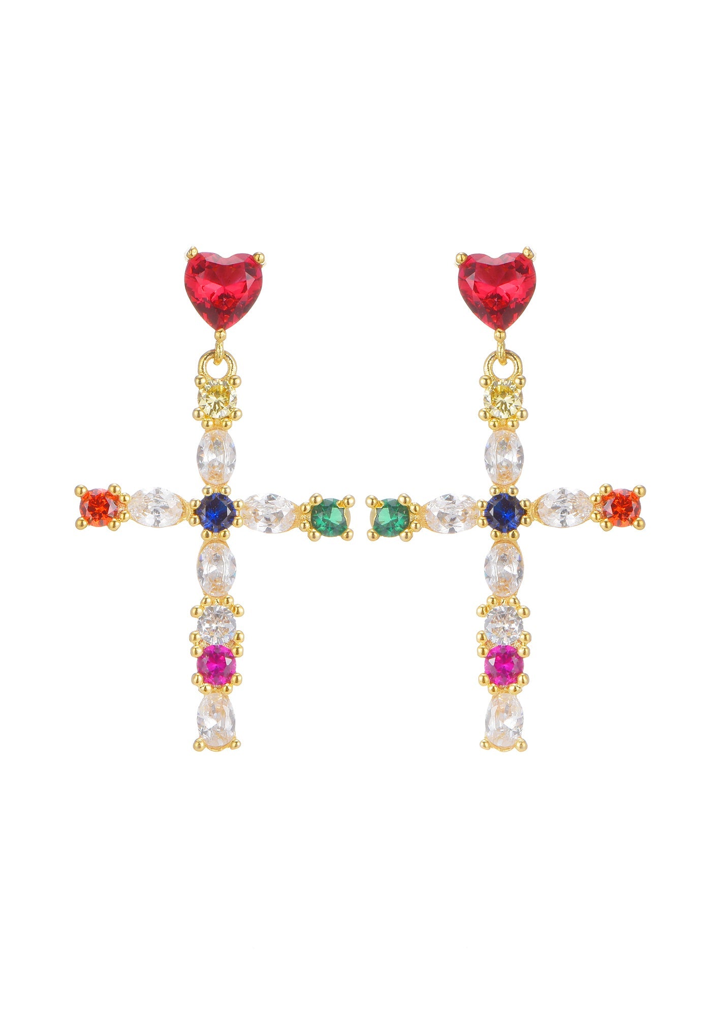 Amour Reine Bunte Liebeskreuz-Ohrringe