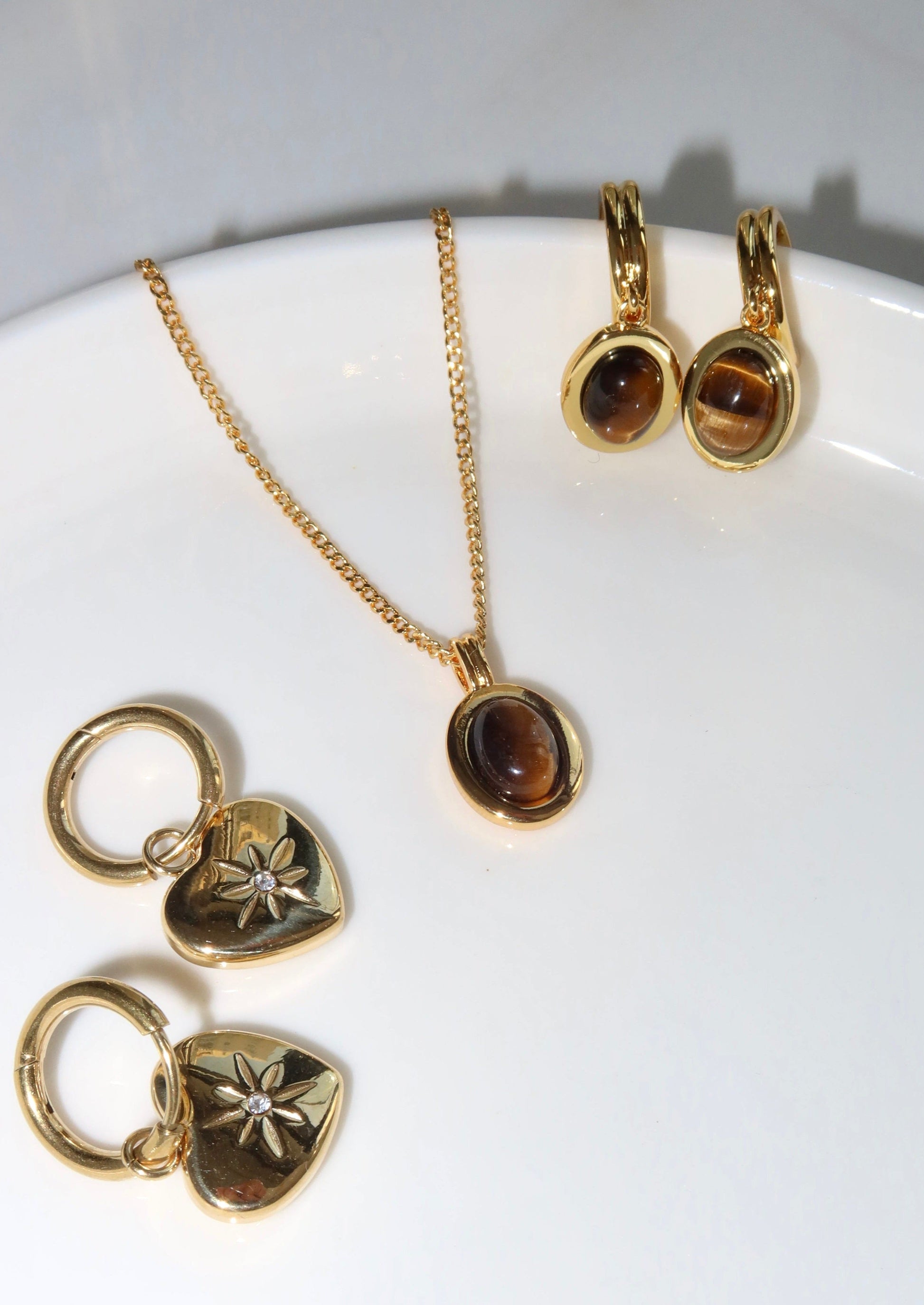Entdecken Sie zeitlose Eleganz mit unseren Anika Brown Stone Ohrringen, die die faszinierende Schönheit des Tigerauges in Szene setzen. Diese sorgfältig gefertigten Ohrringe vereinen erdigen Charme mit raffiniertem Stil.