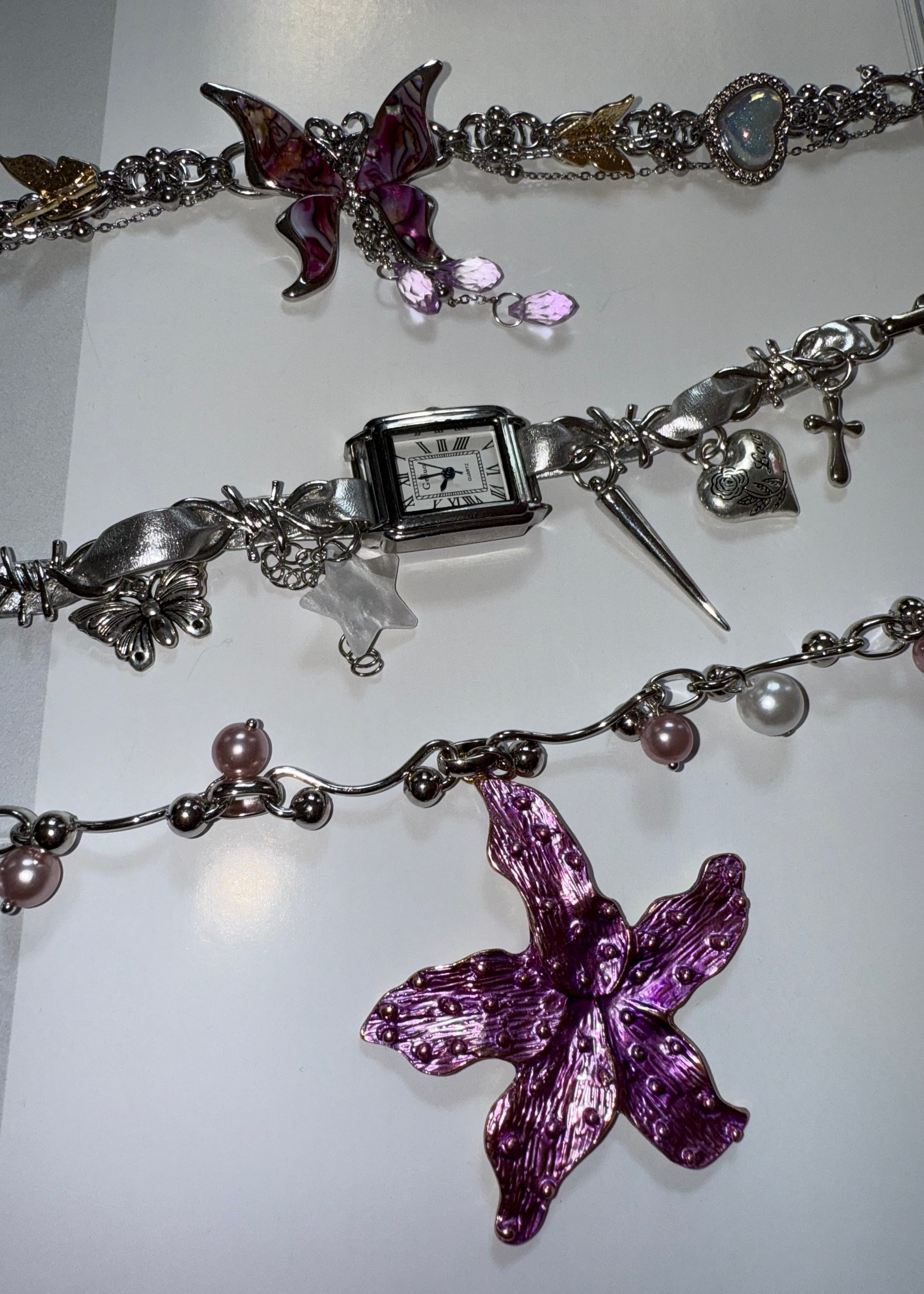 Beatrice By The Sea Y2k Rosa Perlen Silber Halskette