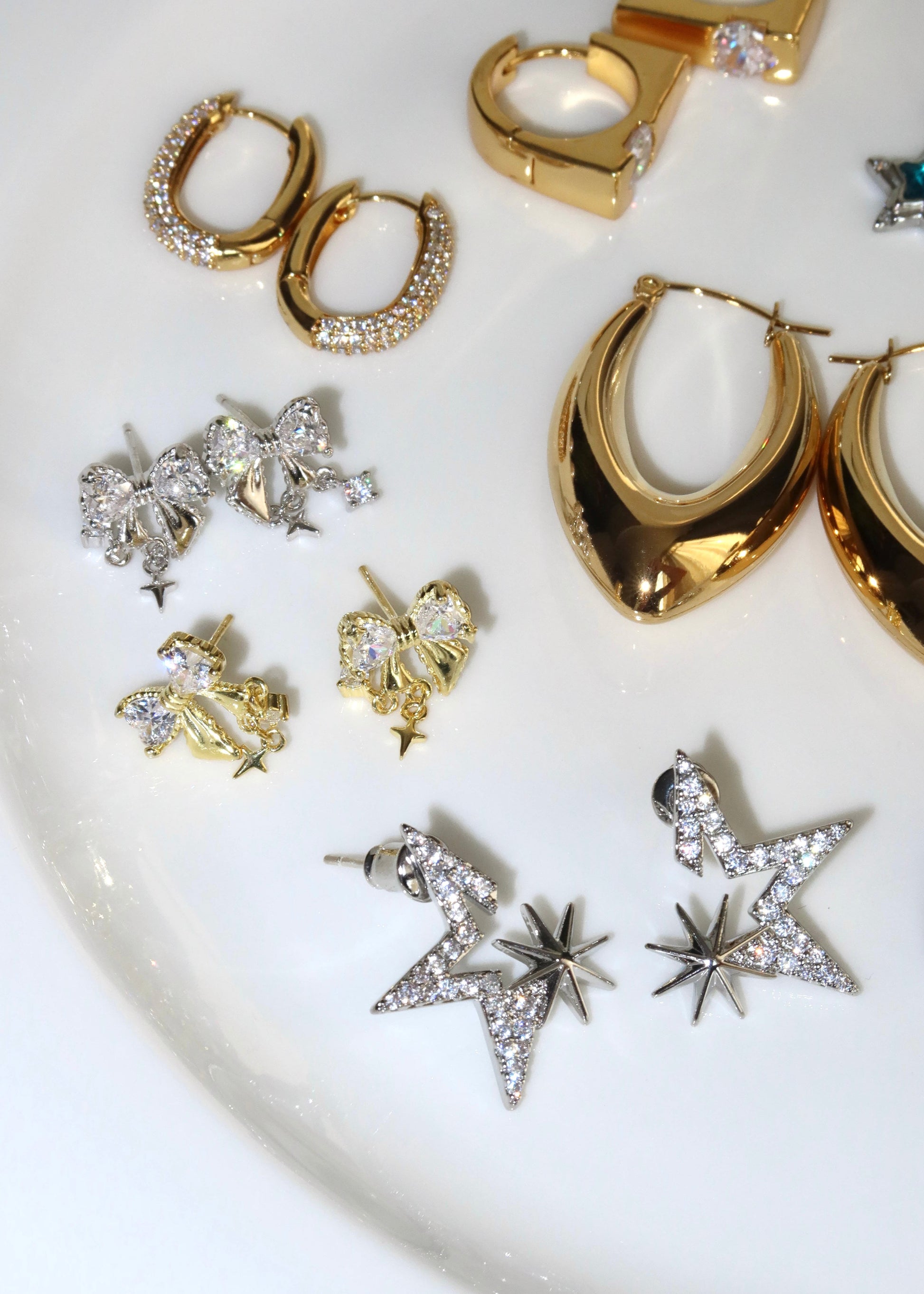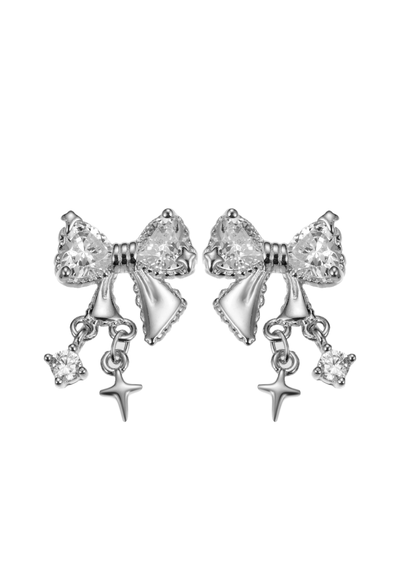 Versprühen Sie Charme mit unseren Bianca Bowknot Ohrringen. Niedliche Schleifen- und Sternmotive funkeln mit Zirkoniasteinen und sorgen für einen verspielten und zugleich eleganten Look. Perfekt für jeden Anlass, vereinen diese Ohrringe Niedlichkeit und Glamour.