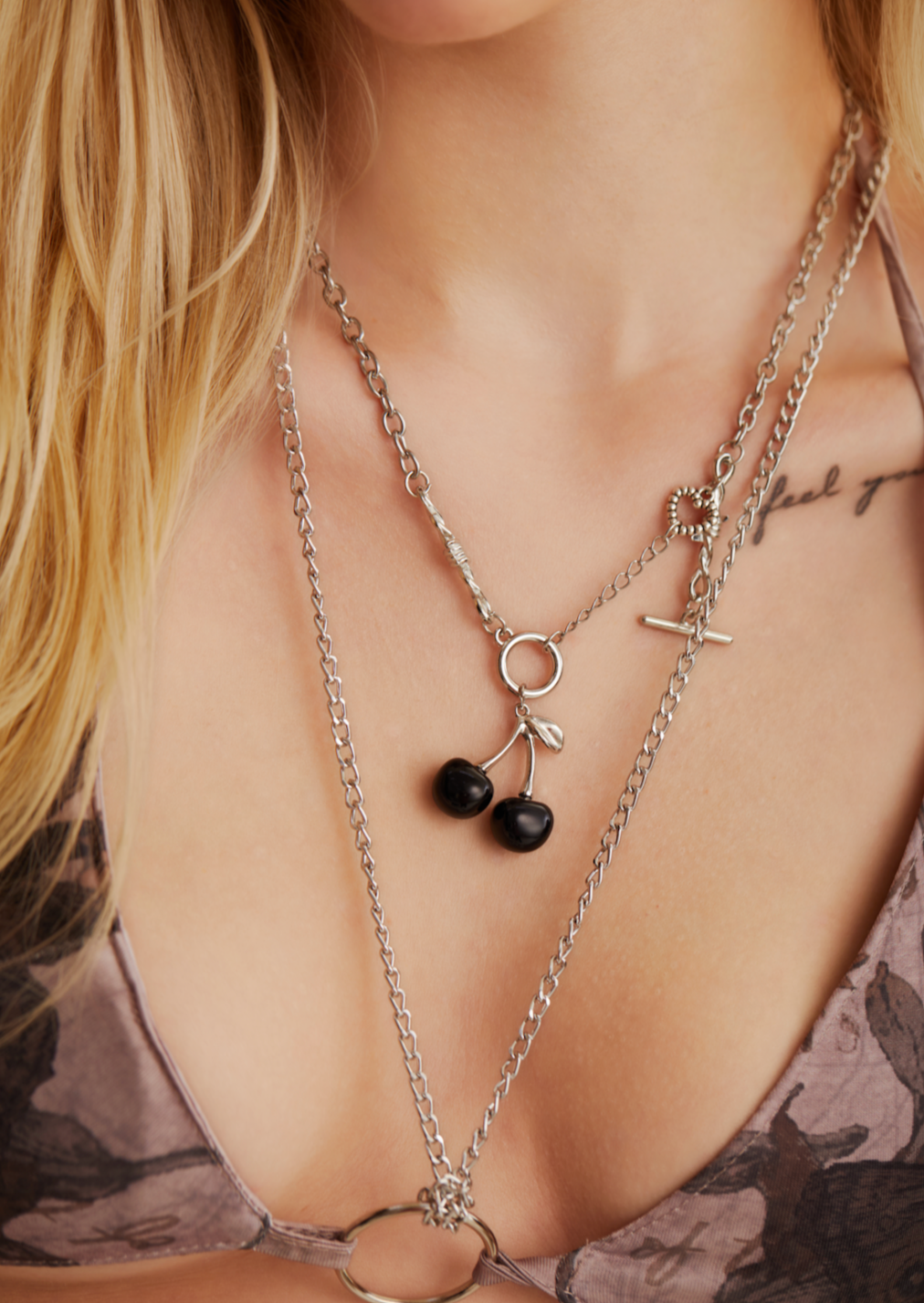 Cool und modern: Das von Schwarzkirschen inspirierte Design mit dem silbernen Herzanhänger definiert Raffinesse neu. Perfekt für alle, die sich nach unverwechselbaren Accessoires sehnen: Diese Halskette verbindet mühelos trendige Mode mit zeitloser Eleganz.