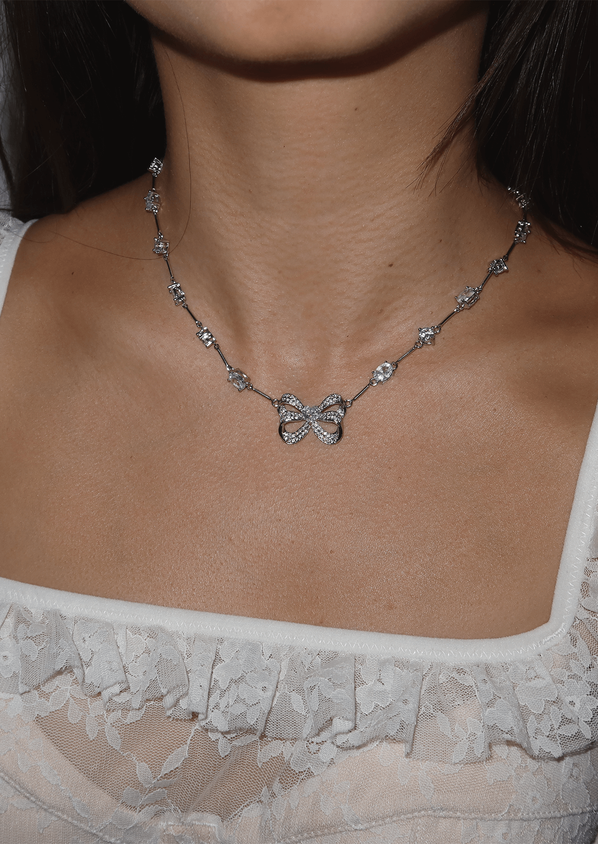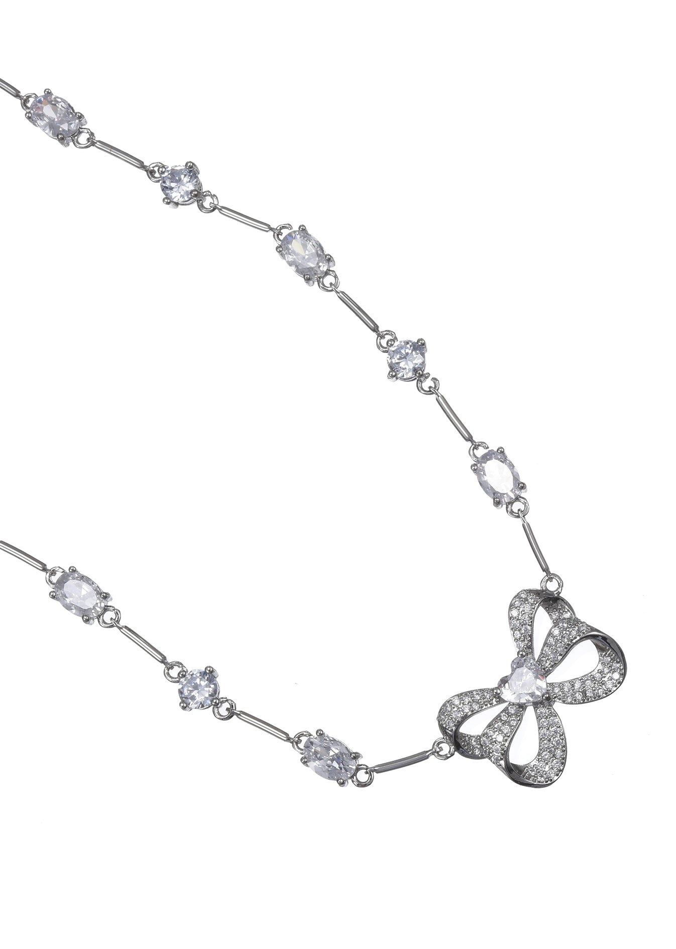 Mit ihrer bezaubernden Schleife und den funkelnden Zirkonia-Steinen strahlt diese Halskette Eleganz und Glanz aus. Werten Sie Ihren Look mit dem strahlenden Glanz dieses zarten Schmuckstücks auf.